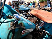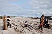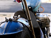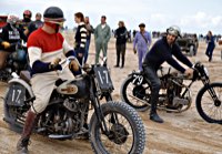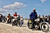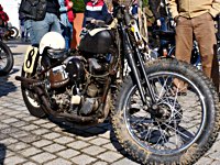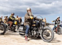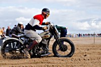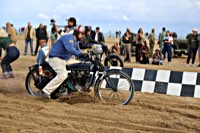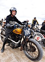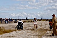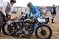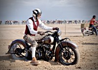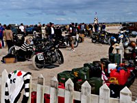 Bueno, fue algo más que un día, pues hay que llegar hasta allí, y Ouistreham, en Normandía, no está a la vuelta de la esquina. Pero como todos sabemos, el tiempo es relativo, y aún más en la Normandy Beach Race. El tema es ir arriba y abajo a lo largo de una franja de playa muy lisa (con la marea baja) en la que se han marcado las líneas del 1/8 de milla para motos y coches. La máquina del tiempo marcó “antes de 1947” y había que asegurarse de que la vestimenta correspondía a la época.