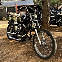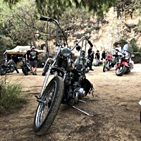 El plan era salir el viernes después de comer para rodar hasta La Cantera Biker Bar en Calafell, una hora al sur de Barcelona, donde se celebra el Old & Proud Gypsy Camp, dedicado a motos H-D previas a 1984, y puesto que allí tienen más de 300 días de sol, nunca imaginé que el tiempo fuese a aguarnos la fiesta. Pero adivina: lo hizo. El viernes por la noche cayeron chuzos de punta. Por la lluvia, mis colegas decidieron presentarse el sábado por la mañana, nos juntamos con otros amigos y finalmente decidimos ir hacia la tarde, a ver si la lluvia amainaba.