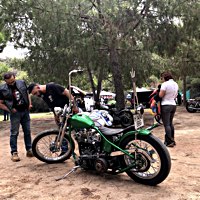 El sábado por la mañana empezaron a llegar más y más motos llenando los párkings reservados para “Pre’84” y el resto. Motos alucinantes, gente genial, estupenda comida y cerveza fría constituyeron un día fantástico. Al anochecer tuvo lugar el concurso “Kick start King” de arrancar a patada y más tarde empezaron las bandas. Primero “Rosie´s Rock Band” tributo a AC/DC y después “The Mother Crow” Heavy Rock barcelonés… Una gran noche