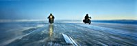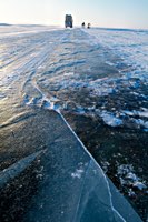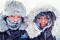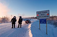 Lo notamos mientras estamos esperando el pollo con papas en el supermercado local. Sea quien sea que entre en la tienda, joven o mayor, todos saludan a Edward y charlan con él un rato. La espera por la comida nos pone nerviosos, hemos llegado hasta aquí armados con dos hierros prehistóricos de Milwaukee, preparados para el último desafío: Averiguar si es posible conducir una panhead 1948 y una custom shovelhead 2005 a 35 grados bajo cero y sobre el hielo. En el caso de lograrlo, surgen las preguntas: ¿por cuánto tiempo? ¿cómo se sentirá? ¿Y qué conductor se atreverá a enfrentarse a una sensación térmica de 35 grados bajo cero y, digamos, 60 kilómetros por hora - lo cual, según las tablas de conversión corrientes, equivale a 57 grados bajo cero.
