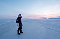 El aire congelado también parece resplandecer. Una luz irreal y misteriosa empieza a llenar el mundo. nieve, hielo y el cielo se confunden. Sólo cuando los primeros rayos de sol se asoman por el horizonte, se va la magia.