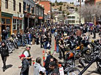 Pero no hay carromatos ni vaqueros deambulando por las ventosas calles entre las montañas llenas de oro. En su lugar encuentras chicos y chicas chopper disfrutando de “The Prowl”, el encuentro casi por descubrir, un festival de viejas Harley, con música en vivo y el sonido de Big Twins a bajas revoluciones retumbando por las estrechas calles.