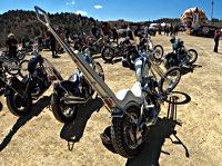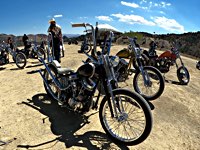 Nuestra ciudad fantasma favorita, Virginia City, Nevada, con su aroma de la fiebre del oro, Mark Twain, el humo de las pistolas del rancho La Ponderosa (¿Te acuerdas de Bonanza?) y célebre gracias a los comics de Lucky Luke, abre un nuevo capítulo en su historia: Choppers Magazine nos ha enviado invitaciones para su “Virginia City Pound Up Rodeo”, justo al pie del monte Davidson. El borboteo de innumerables Harleys se mezclaba con los crujidos de las aceras de madera frente a los salones, los resoplidos de toros salvajes y mustangs, el hipnótico canto de las steel guitars de la banda “The Ryolite Sound”y el dulce sonido de la cerveza pasando por cientos de gargantas. Todo esto se juntó en una tormenta cerebral en nuestras cabezas, o sea, tenemos retazos sueltos de recuerdos del evento.