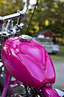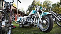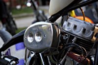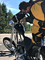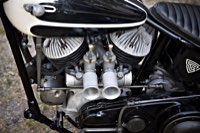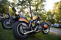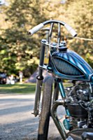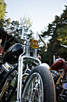 Alors en avant, on attache le paquetage au sissy-bar et sur le guidon Rabbit Ear, on dirige la fourche plein nord et on ouvre les gaz jusqu’à ce que des élans apparaissent à contresens dans le trafic. Enfin presque. Car avec un tel réservoir Teardrop, il est conseillé de surveiller la moindre station service, sans quoi : le bidon goutte d’eau fait couler quelques gouttes de sueur à force de devoir pousser. Surtout lorsqu’on roule tranquillement à travers les routes secondaires en direction du légendaire bike show de Norrtälje.