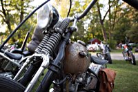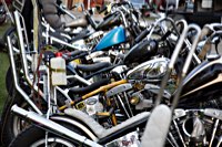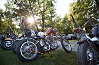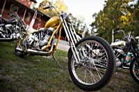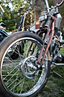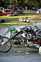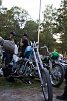 On retourne l’engin à rallonge et on revient vers ce coin de grillage où on avait aperçu tant de chromes. Et que voilà, à travers le trou dans la haie, on voit déjà deux gars qui nous font signe d’entrer. C’est sans doute dû au fait que notre chopper a décidé – peut-être pas vraiment par hasard ? – de rouler vers le HANG EM HIGH du Hi-Revs CC et Lynchmen à Engköping. On ne perd pas de temps, on pose les brêles, on s’ouvre des bières et on va mater du chopper. Ceux qui sont déjà en place et ceux qui arrivent à chaque instant.