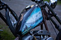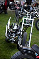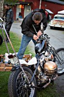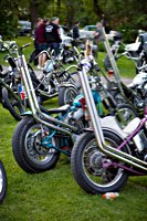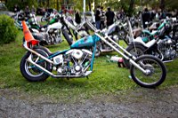 tents, children, bike shows without the show stress, sissy bars with pallets of beer, open belt drives, upsweep pipes so long the noise got lost inside :). Most of the stuff on the bikes was home made in Sweden and adjacent countries. The bikes were relaxed. The people: relaxed, nordic and friendly. The night was a long one. We wouldn't be surprised to see some or all of those we had a beer with again at the Twin Club MC's Custom Bike Show in Norrtälje. See you later, dudes! Skol! Prost and Rømpømpømpøm!