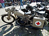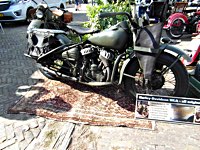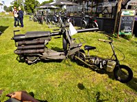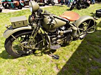 aussi loin que le regard pouvait porter. Il y avait des motos vraiment très spéciales comme une Douglas 1914, une Harley-Davidson ELC 1942, un scooter Vespa 1959 avec lance-roquettes intégré. Mais aussi une quantité de bécanes civiles, principalement de fabrication américaine, comme c’est toujours le cas lors des rencards AMCA.