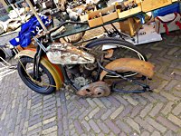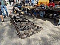 Et il y avait en effet matière à discussion, étant donné qu’à Raalte, les motos ne sont jamais les mêmes. Chaque année de nouvelles “sorties de grange” sont ramenées dans le monde des vivants. Et pour ceux qui pensent qu’il n’y a plus rien à trouver, songez donc à ce trésor : un Knuckle 1936 en peinture d’origine, qui avait été importé à Hambourg à une époque où c’était déjà impossible – une belle histoire que nous espérons pouvoir vous raconter prochainement en détails. Il y avait aussi cette moto non restaurée de marque Eagle (USA) de 1915, exposée par un heureux Suédois, qui était vraiment fantastique. Et la liste est longue.
