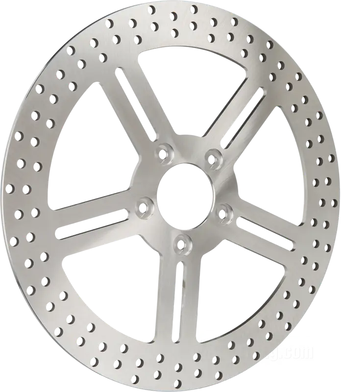Des disques de frein pour Harley-Davidson du leader des fabricants de freins aux USA. Les 5 bâtons ont été découpés, ce qui permet encore de gagner du poids. Tous les disques PM sont usinés sur des fraiseuses CNC, afin d’atteindre les tolérances nécessaires, et percées afin d’en réduire le poids et d’améliorer le freinage par temps humide.