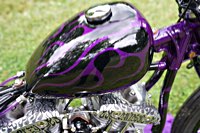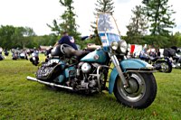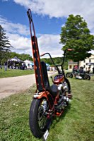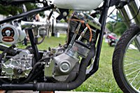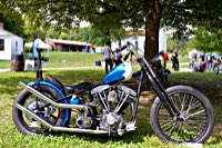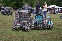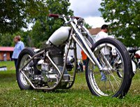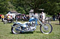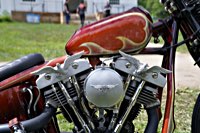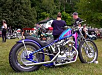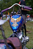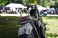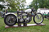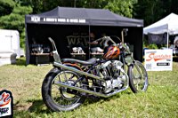 américains dans la mesure où on y trouve de nombreuses marques non américaines, comme Horex, BMW, des deux-temps, des motos de course, le tout à un niveau très élevé. Après l'ouverture des portes, le parking à motos s'est rempli rapidement et les visiteurs ont visité tous les stands offrant tout ce qu'il faut pour embellir votre brêle, votre corps ou votre maison avec style. Le dimanche a fait honneur à son nom, le soleil était au rendez-vous, nous avons eu de bonnes discussions sur les pièces que nous avions apportées, mais avant que nous puissions repartir pour une autre virée épique, la pluie était de retour.