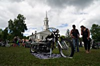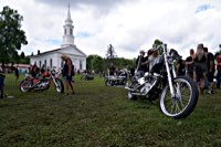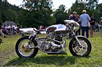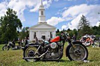 éloigné de Cleveland. À une demi-heure de route de la ville se trouve Hale Farm, dans une réserve naturelle si idyllique que les producteurs d'Hollywood n'auraient pas pu trouver mieux. Se rendre à Hale Farm est un rêve en soi, sur de belles routes de campagne qui surpassent toutes les autres routes de campagne idylliques. Mais nous étions pressés d'installer notre stand, et c'était une bonne chose, car le premier jour, il n'y avait pas de pluie. L'après-midi, des souffleurs de feuilles ont été utilisés pour sécher les motos après l'arrêt de la pluie, et nous avons eu le temps d'examiner les machines présentes, encore scintillantes de gouttes de pluie.