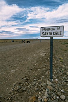 Presto però si ripresenta la realtà bicerchiata: la catena della primaria di Paul sbatacchia, tocca tenderla, nonostante il vento e la polvere. Poco dopo il trabiccolo di Paul spara nere nuvolette. Già, sporca le candele, quest’andazzo sottoregime da ghiaia. Togliere quindi e rimetterne delle nuove: vroooom! Il macinino sparacchia di nuovo a 1200cc. Ritornati a Puerto Pirámides ancora una revisione generale – domani tocca a un altro pezzo di rotta.