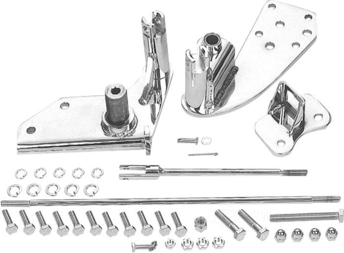 Questi supporti cromati sono ad hoc per migliorare notevolmente la seduta dei biker sopra il metro e ottanta, in quanto spostano i pedali in avanti di circa 7,5 cm. I poggiapiedi, il pedale del freno e la leva del cambio vanno mantenuti.